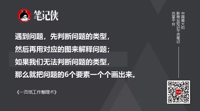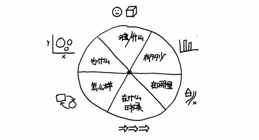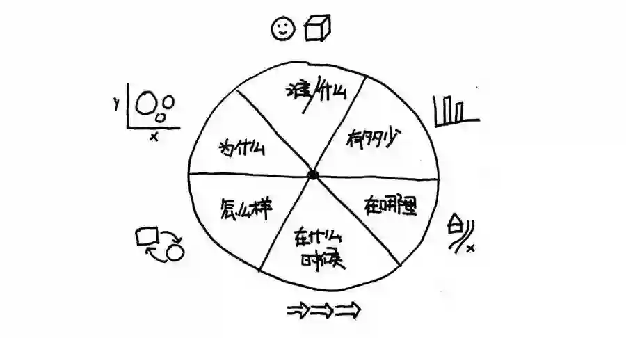 六个要素分别对应一种图,只要你可以熟练的运用这6种简单的图,就可以通过画图来呈现任何问题。