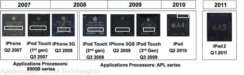 苹果和三星合作开发了第四代iPhone片上系统,苹果把这款芯片称为A4。三星在自己的手机上使用了同一款芯片,但品牌名称为Hummingbird、S5PC110,后来把这款芯片“追封”为Exynos 3。