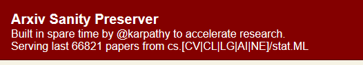 在页面上方可以看到,arxiv-sanity只展示machine learning的论文,如CV,CL等ML的分支领域,因为这是arxiv-sanity作者自己的研究领域。(对,这是人家闲暇时间写的)。作者已经把arxiv-sanity开源了,所以如果你想根据自己的研究领域新建自己的arxiv-sanity,可以去GitHub自己fork。GitHub搜索 karpathy/arxiv-sanity-preserver。