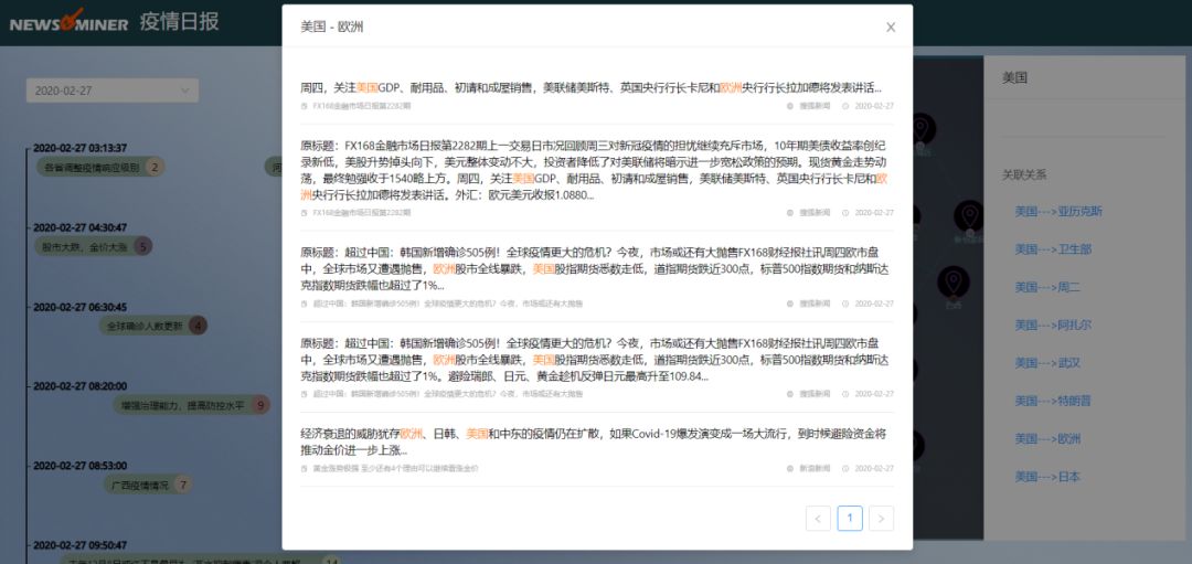 抽取美国与欧洲为关键词的新闻,由此得出疫情与股市的关系较为紧密。