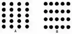 A被看成纵列,B被看成横行,因为它们形状一致的情况下,位置更接近就更容易分成一组,理解起来更容易。