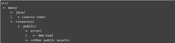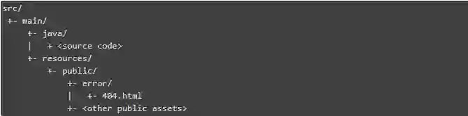 如果想为某个给定的状态码展示一个自定义的HTML错误页面,你需要将文件添加到/error文件夹下。错误页面既可以是静态HTML(比如,任何静态资源文件夹下添加的),也可以是使用模板构建的,文件名必须是明确的状态码或一系列标签。