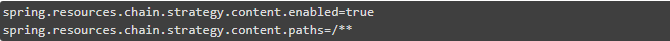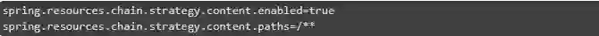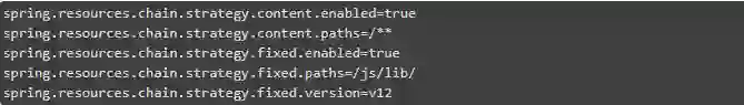 以下的配置为所有的静态资源提供一种缓存清除(cache busting)方案,实际上是将内容hash添加到URLs中,比如<link href="/css/spring-2a2d595e6ed9a0b24f027f2b63b134d6.css"/>: