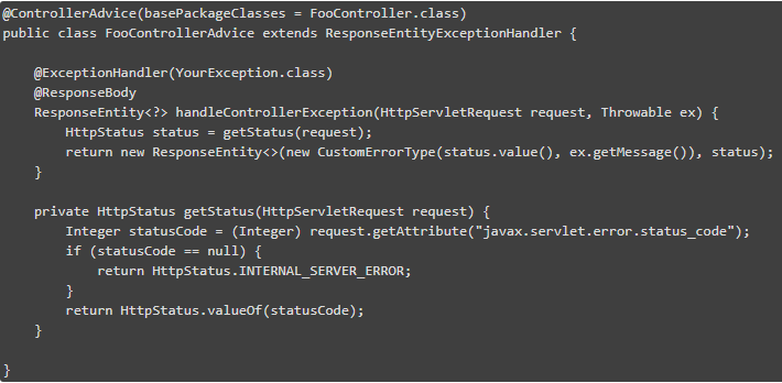 你也可以使用Spring MVC特性,比如@ExceptionHandler方法和@ControllerAdvice,ErrorController将处理所有未处理的异常。