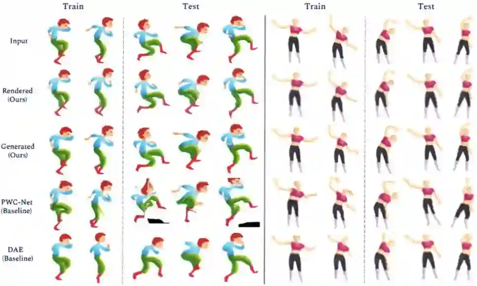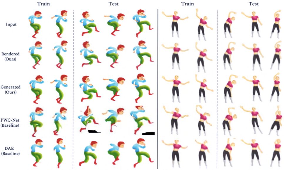 摘要:近日,Adobe 和康奈尔大学的研究人员提出一种基于学习的方法,该方法可基于卡通角色的少量图像样本生成新动画。传统动画的每一帧都由艺术家绘制完成,因而输入图像缺乏共同结构、配准或标签。研究人员将动画角色的姿势变化演绎为一个层级 2.5D 模板网格的变形,并设计了一种新型架构,来学习预测能够匹配模板和目标图像的网格变形。这使得研究人员可从多样化的角色姿势集合中抽象出一种共同的低维结构。研究者将可微渲染和网格感知(mesh-aware)模型的近期进展结合起来,成功地对齐通用模板,即使训练期间只有少量卡通角色图像也能实现。除了粗糙的姿势,卡通角色的外观也会因为阴影、离面运动(out-of-plane motion)和图片艺术效果而呈现细微的差异。研究人员使用图像平移网络(image translation network)捕捉这些细微变化,以改进网格渲染结果,为生成高质量卡通角色新动画提供了一个端到端的模型。该研究提出的生成模型可用于合成中间帧,创建数据驱动的变形。其模板拟合(template fitting)步骤在检测图像配准方面的效果明显优于当前的最优通用技术。