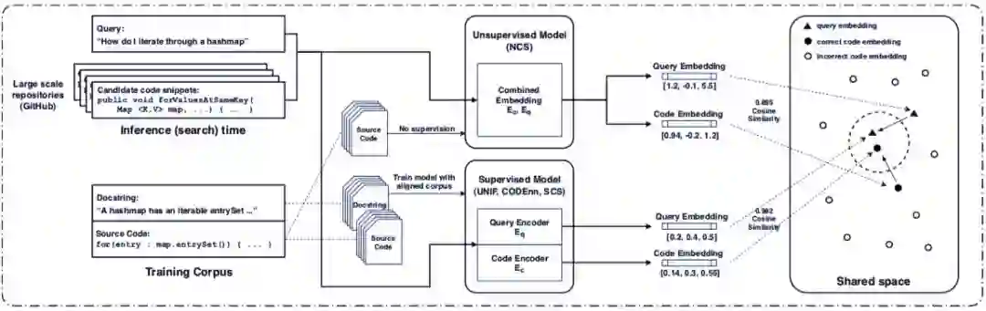 摘要:近来,关于使用深度神经网络来进行自然语言代码搜索出现了很多建议,其中共同的观点是将代码和自然语言查询嵌入到实向量中,然后使用向量距来近似代码和查询之间的语义关联。学习这些嵌入的方法有很多,其中包括仅依赖代码实例语料库的无监督方法以及使用成对代码和自然语言描述对齐语料库的监督方法。在本篇论文中,MIT 计算机科学与人工智能实验室、Facebook 和加州大学伯克利分校电气工程与计算机科学系的研究者对这些无监督和监督方法进行了评估,结果如下:将监督方法融合现有无监督方法中可以提升性能,尽管必要性不大;代码搜索中,简单的监督网络较基于序列的更复杂网络更加有效;虽然使用文档字符串进行监督是常见的做法,但文档字符串与更适合查询的监督语料库的有效性存在巨大差异。