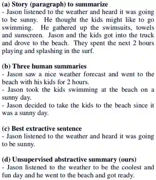 论文 1:SummAE: Zero-Shot Abstractive Text Summarization using Length-Agnostic Auto-Encoders