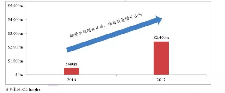 2017年印度Fintech融资额度从2016年的$480m增长4倍到了$2.4bn.。从案子数量来看,2017年成交的投融资项目数也增长了65%。表明2017年印度的Fintech行业愈加吸引了资本市场的青睐。
