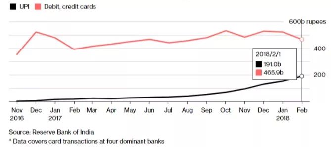 1、UPI支付迅速崛起,印度支付领域会呈白热化竞争