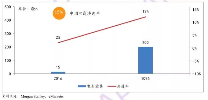 根据MorganStanley预测,2016年印度电商零售市场份额为$15bn,未来10年将以30%的年化增长率到2026年增长到$200bn,渗透率从2%提升到12%。对比中国,电商零售渗透率在2016年就达到了19%。随着印度电商未来的飞速发展,包括电商巨头Flipkart,Amazon等的补贴,将极大地促进Fintech行业发展,直接受益的便是支付和借贷领域。电商数据的累计也会促进Fintech行业中的征信与风控环节。