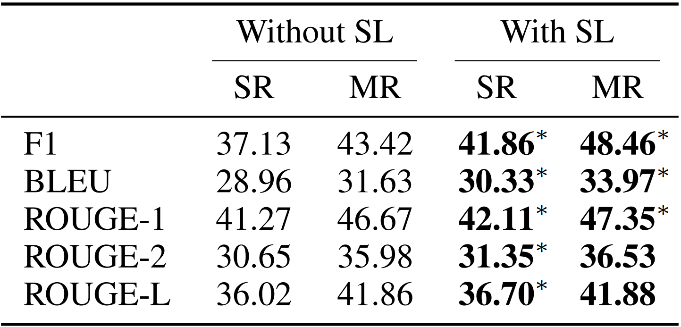此外,RefNet 引入了一个解码选择器损失函数,其对解码选择器的输出分布进行了监督学习以辅助模型在每个时间步对生成与抽取的选择。因此,论文也对比了有无此损失函数的实验结果,见图 13。实验结果表明,额外地监督带来了进一步提升。