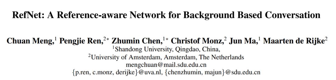 论文标题:RefNet: A Reference-aware Network for Background Based Conversation
