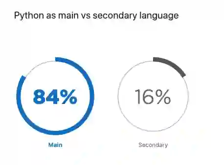 不得不说,越来越多的开发者已经掌握了 Python 这门语言技能,并且正在逐渐地将其作为自己的主要编程语言,占比 84%。
