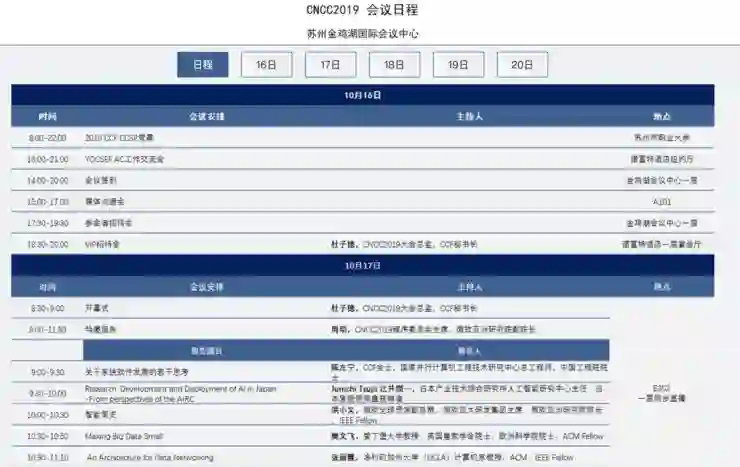 10 月 17 至 19 日,以「智能+引领社会发展」为主题的 2019 中国计算机大会(CNCC 2019)将在苏州金鸡湖国际会议中心举行。