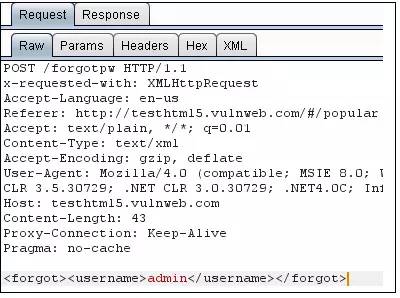 访问 http://testhtml5.vulnweb.com/ 站点,点击 ‘Login’下面的 ‘Forgot Password’ 链接。