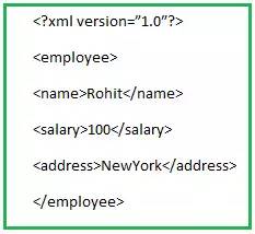 比如,下图就是一个用来描述一个职工的XML文档样本,其中的’name’,'salary’,'address’ 被称为XML的元素。