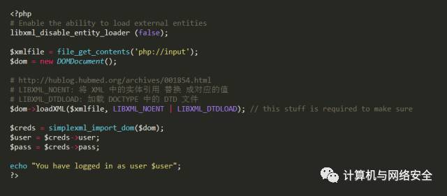 存在xxe漏洞的php代码如下,加了一些注释