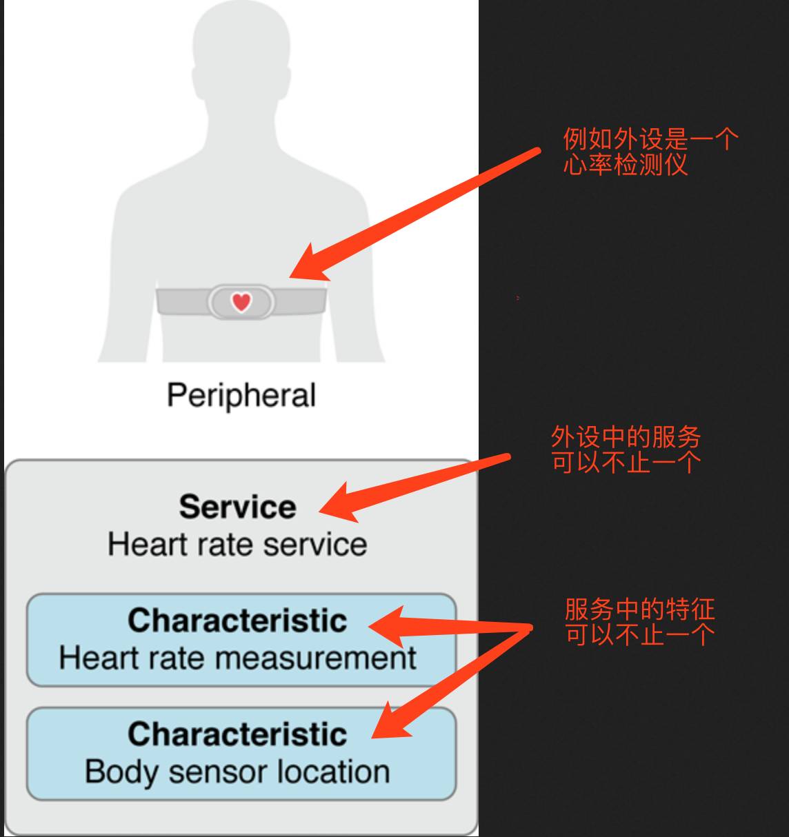 外设:被扫描的设备。比如当你用手机的蓝牙扫描连接智能手环的时候,智能手环就是外设。