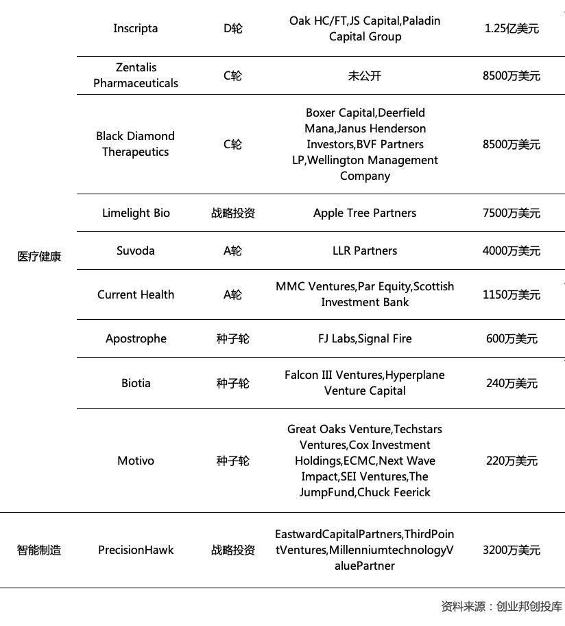 本周单笔过亿人民币融资事件有8起,医疗健康3起,硬件2起,金融、智能制造、社区社交各1起。