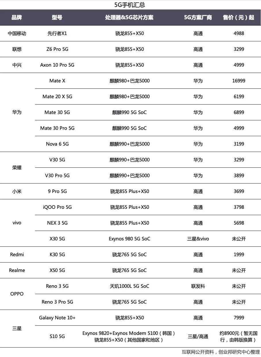 从6月5G牌照正式发放,到10月5G正式商用以来,各大厂商争相发布了自家的5G手机。截止目前,11余家品牌发布了近20款5G手机,价格由1,999元-16,999元不等。