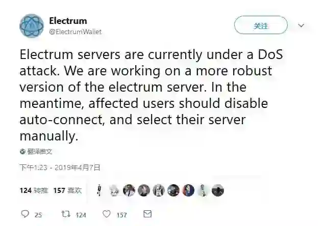 Electrum 官方表示:“根据我们的调查分析失窃的比特币价值数百万美元,其中有一位用户丢失了价值 14 万美元的比特币。这次 DDoS 攻击达到了新的安全级别,而且整个过程仅发生在 1 周前。用户的正常访问被每秒 25 Gigabits 的流量所淹没。”