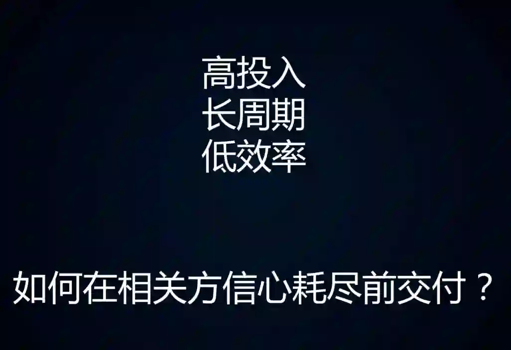 2)交付很重要。交付不一定要是最终的产品,尽可能思考是否可以可以把中间阶段变成可用的。按周为单位交付。