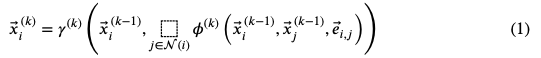 Neighborhood Aggregation:将卷积算子推广到不规则域通常表示为一个邻域聚合(neighborhood aggregation),或 message passing scheme (Gilmer et al., 2017)。