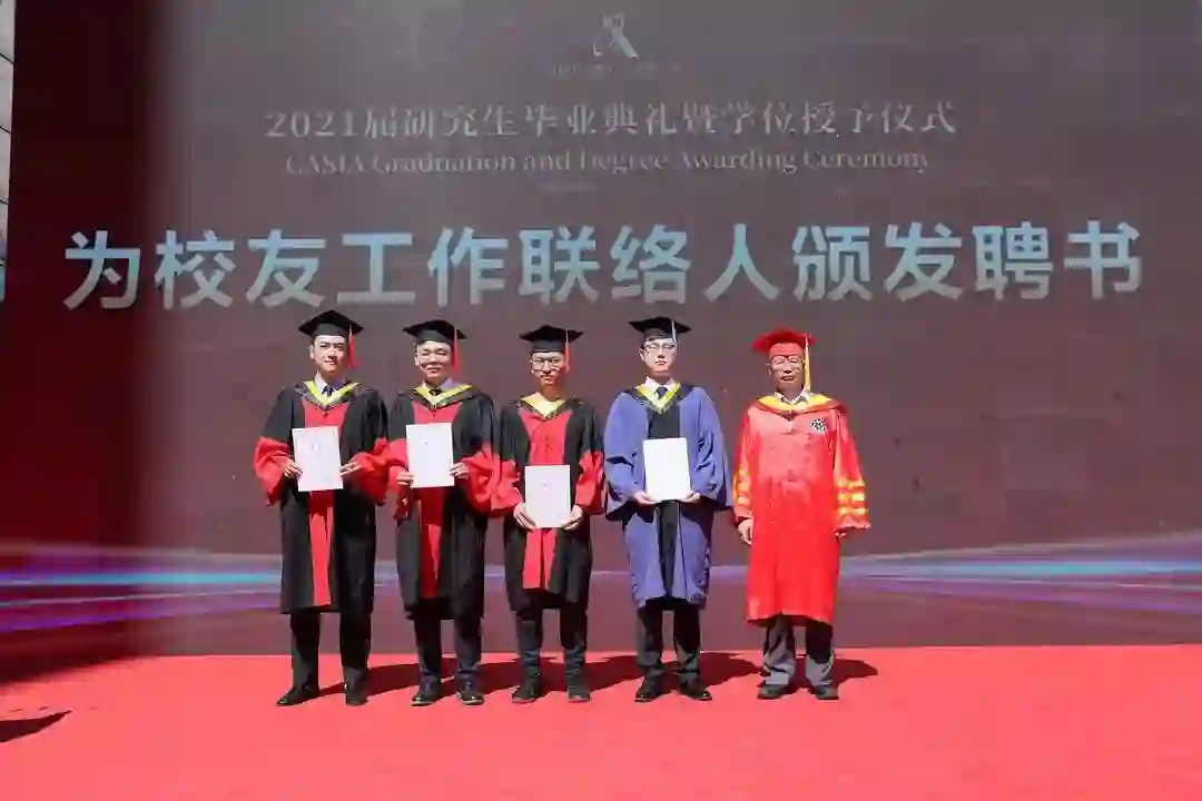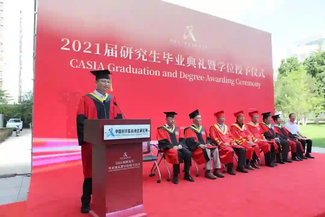 6月20日上午,自动化所2021届研究生毕业典礼暨学位授予仪式在智能化大厦北广场隆重举行。自动化所所长徐波、副所长刘成林、所学位委员会主席谭民、导师代表王飞跃研究员、徐德研究员、杨戈研究员、余山研究员及全体毕业生出席典礼,参加典礼的还有2020届校友代表及部分毕业生亲属。仪式由陶建华研究员主持。