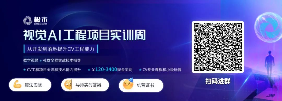 即可申请加入极市目标检测/图像分割/工业检测/人脸/医学影像/3D/SLAM/自动驾驶/超分辨率/姿态估计/ReID/GAN/图像增强/OCR/视频理解等技术交流群