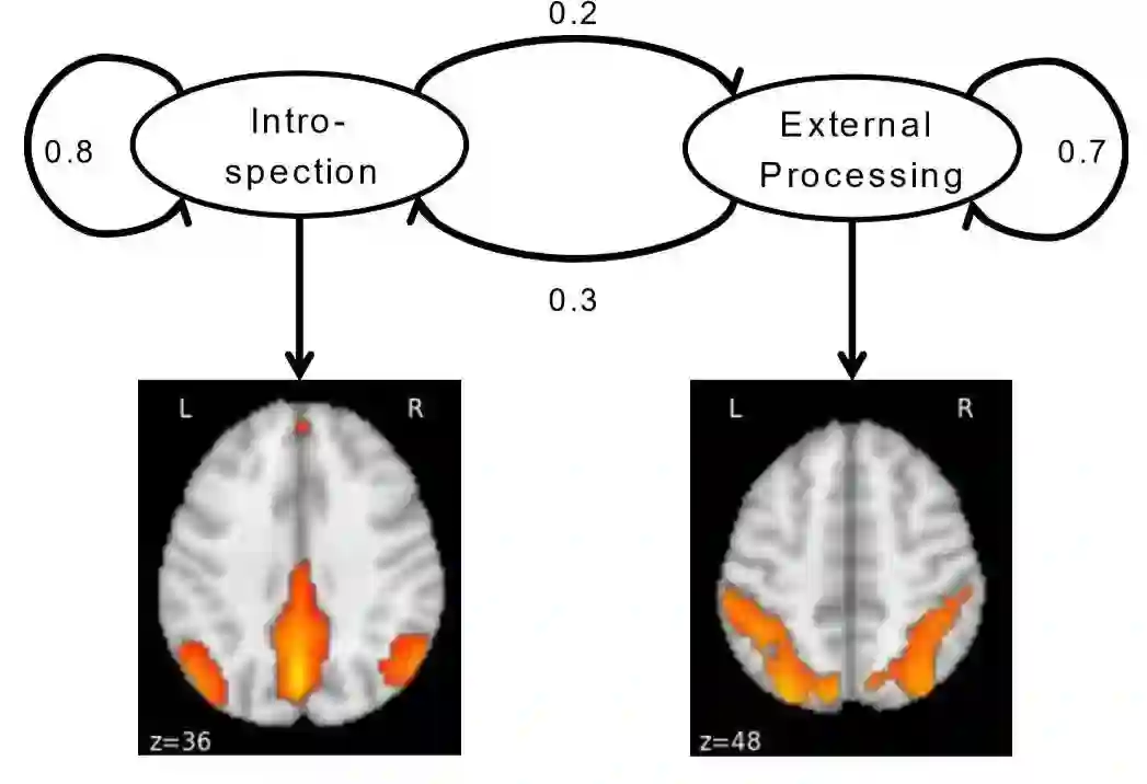 大脑这样完全动态的系统是很难去完全描述和表征的,因此人们尝试对其进行简化和分解。研究者普遍认为,静息态的大脑在许多明确定义的状态之间跳跃。胡小平教授提出可以使用隐马尔科夫模型来描述这一过程。