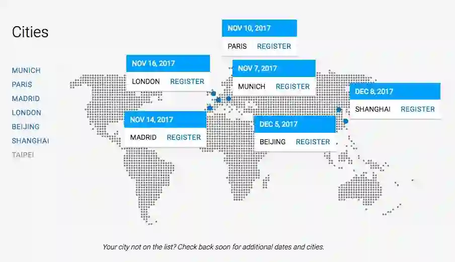 很高兴今年初在纽约市的 AMP Conf 上来了很多人。以此成功为基础, AMP Conf 将在 2018 年初登陆阿姆斯特丹。届时将分享 AMP 的最新发展,并且有机会与项目的核心贡献者一对一交流,您定然不虚此行(即使天气寒冷!)。具体的日期和报名方式将在下个月公布。同时,请确保查询您附近的城市是否将举行 AMP Roadshow。我们计划 11 月到欧洲, 12 月前往中国路演。