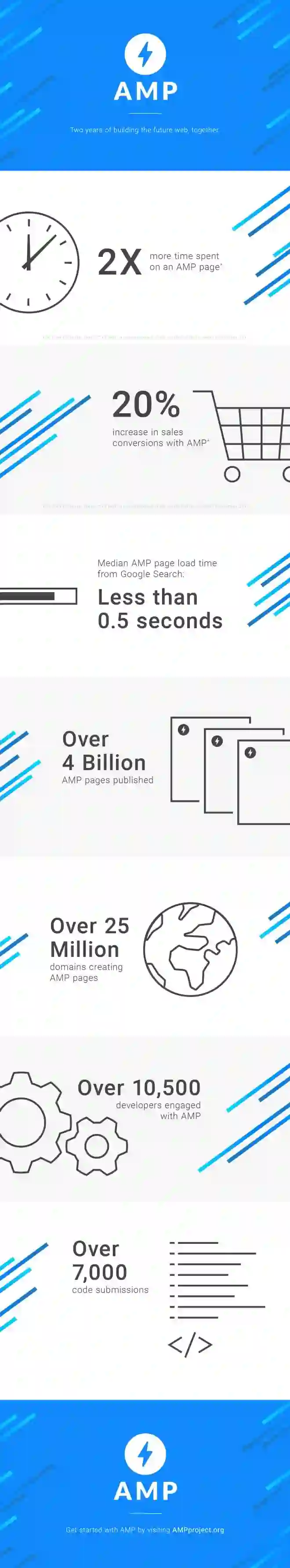 一个 AMP 网页从 Google 搜索加载的时间中间值不到半秒。AMP 目前的影响令人激动,但还有更多工作等着我们一起去完成。