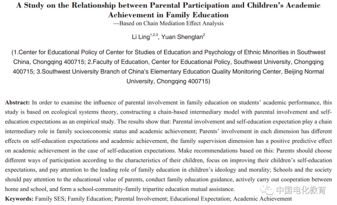 [31] Wei D.Parental influence on Chinese students’achievement: a social capital perspective[J].Asia Pacific Journal of Education,2012,32(2):153-166.
