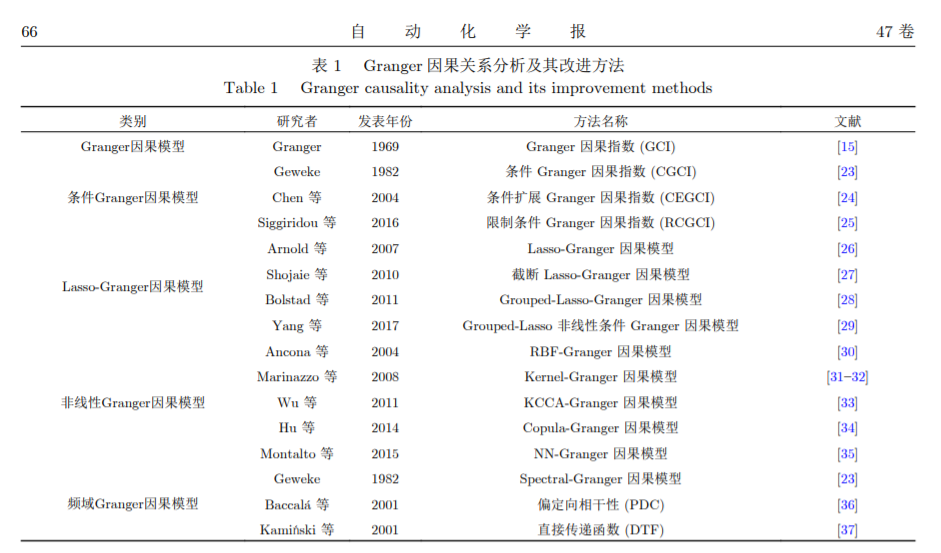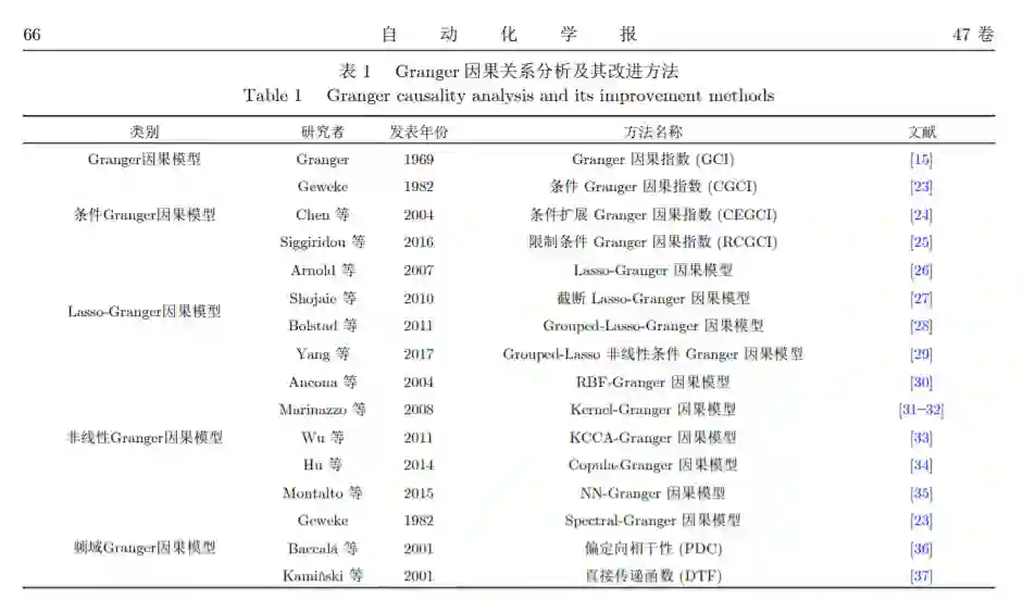 综上所述, 相比于常规的相关性分析方法, 因果分析方法能够分析出具有方向性的直接因果关系, 更加适用于多变量系统的分析与建模. 本文针对多元时间序列因果关系分析的几类典型方法进行综述, 包括Granger因果关系分析、基于信息理论的因果分析和基于状态空间的因果分析, 并结合当前流行的机器学习方法、不同领域时间序列建模的需求等, 讨论因果分析方法的实际应用和未来发展趋势.
