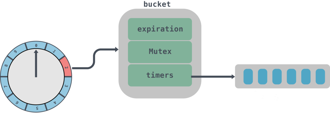 tick、wheelSize、interval、currentTime 都比较好理解,buckets 字段代表的是时间格列表,queue 是一个延迟队列,所有的任务都是通过延迟队列来进行触发,overflowWheel 是上层时间轮的引用。