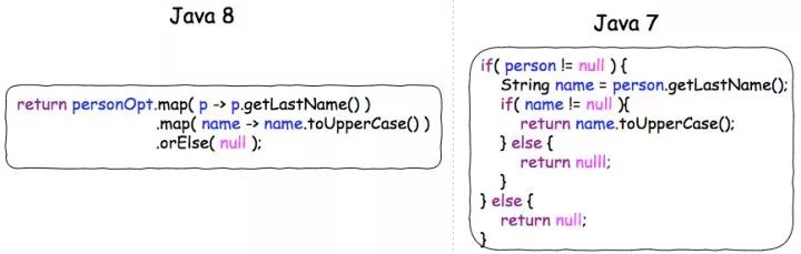 Optional<T>如果不结合Lambda使用的话,并不能使原来繁琐的null check变的简单。