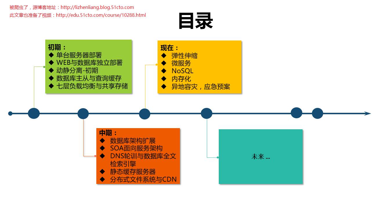 一个成熟的网站架构并不是一开始设计就具备高可用、高伸缩、高性能等特性的,它是随着用户量和业务线不断增加,基础架构才逐渐健壮的。在发展初期,一般都是从0到1,不会一上来就整一些大而全的架构,也很少人这么任性。