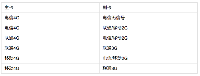 就目前而言,iPhone XS Max 不支持双 4G,不支持两张电信卡。具体的情况如下表所示。