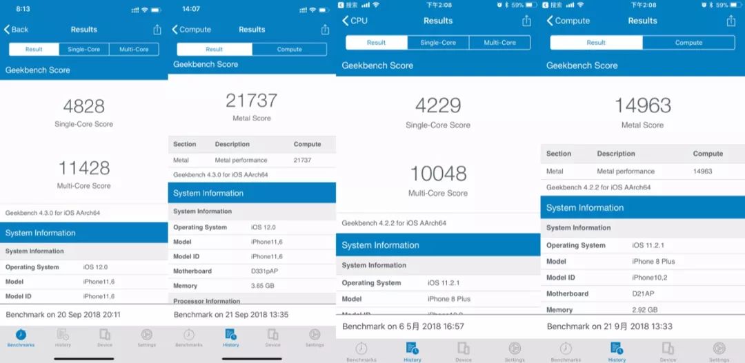 关于 A12 芯片的性能,在此前的文章中,我们已经提到过。总的来说,和 A11 相比,A12 的 CPU 性能提升比较有限,GPU 性能提升幅度比较大。和安卓阵营的骁龙 845 相比,A12 的性能优势相当明显。