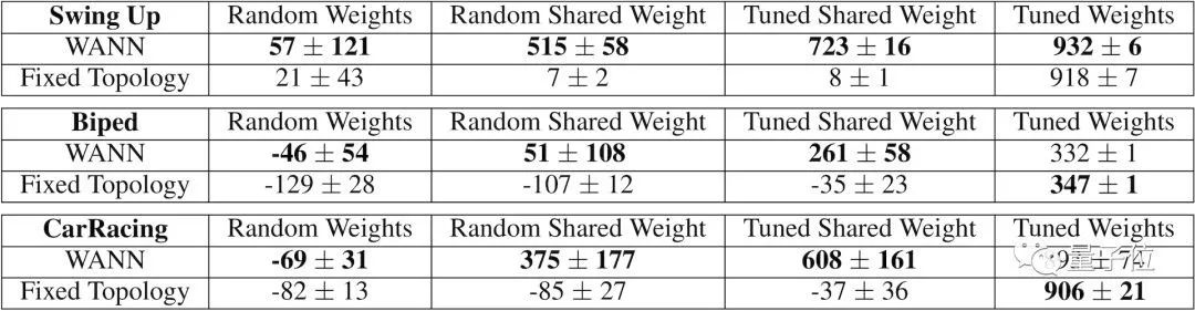 WANN与传统的固定拓扑网络相比,可以使用单个的随机共享权重也能获得更好的结果。