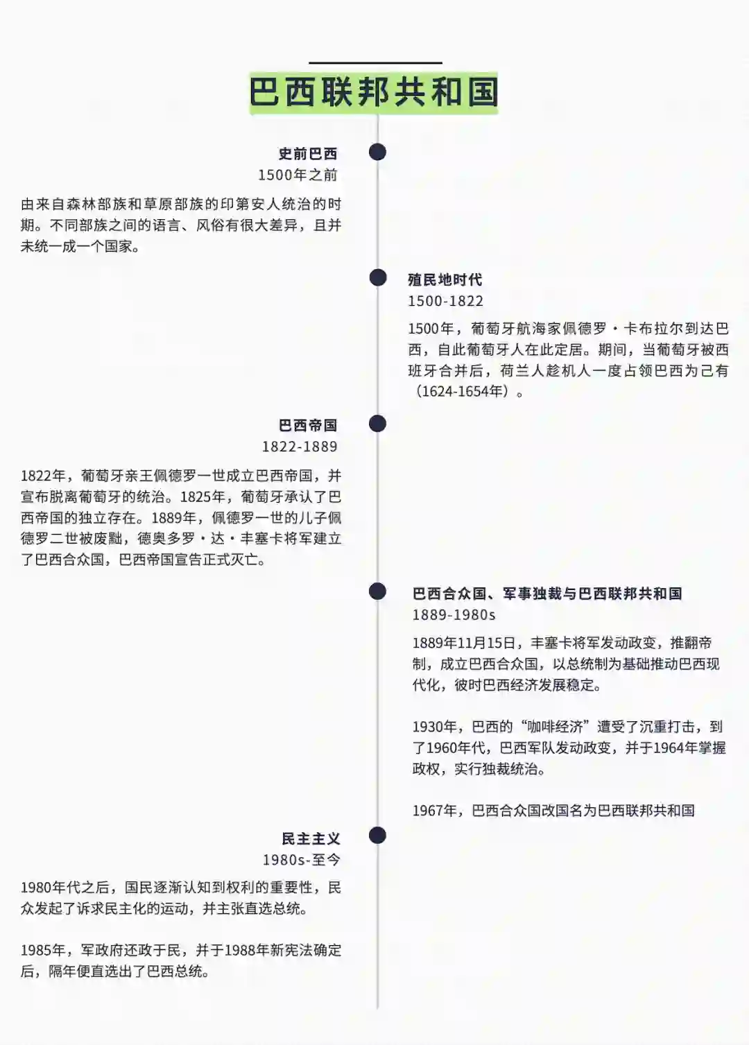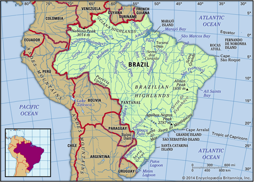 巴西联邦共和国,简称巴西,官方语言为葡萄牙语,位于南美洲东南部,北邻法属圭亚那、苏里南、圭亚那、委内瑞拉和哥伦比亚,西邻秘鲁、玻利维亚,南接巴拉圭、阿根廷和乌拉圭,东濒大西洋。国土面积约850万平方公里,是拉美最大国家,也是世界第五大国家,仅次于俄罗斯、加拿大、中国和美国。