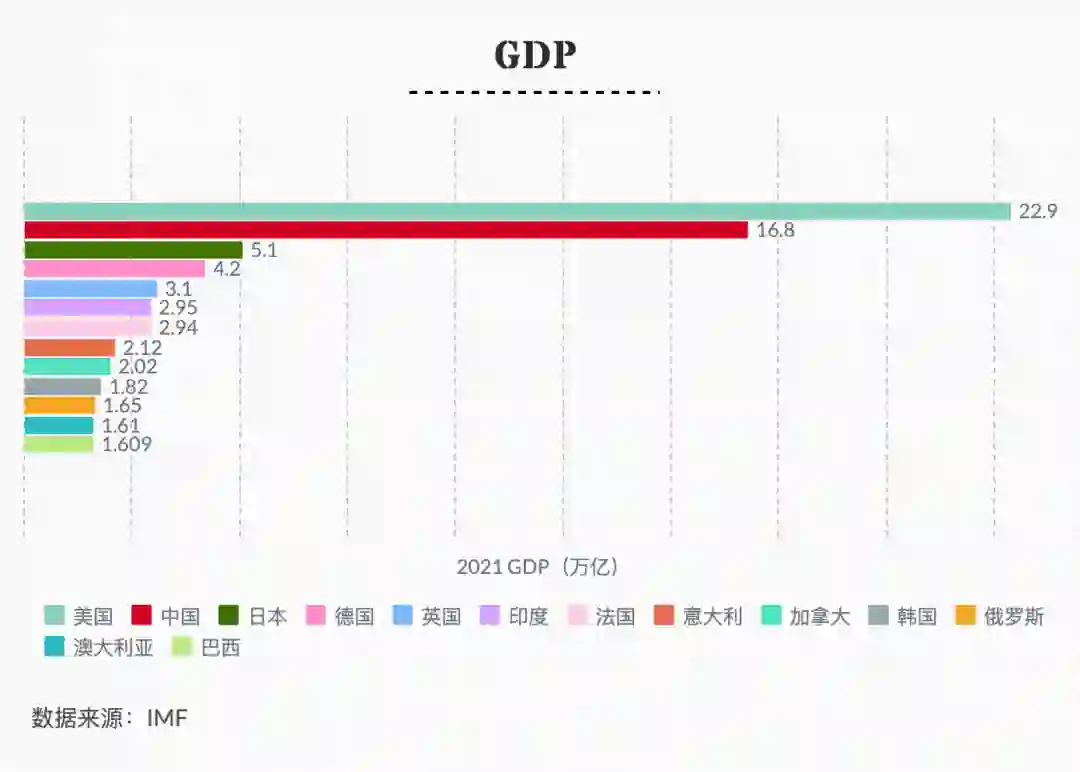 根据巴西国家地理与统计局(IBGE)公布的《国民经济核算报告》显示,巴西2021年的 GDP 恢复至1.609万亿美元,增长4.6%,略低于市场预期。此外,就世界各国 GDP 排名来看,根据国际货币基金组织(IMF)2021年的数据,巴西的 GDP 以1.609万亿美元排全球第13位,但仍居拉美第一位。