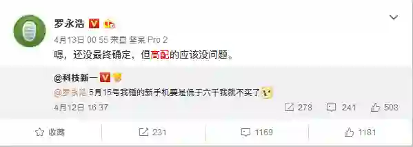 罗永浩:锤子新旗舰高配版价格超六千应该没问题