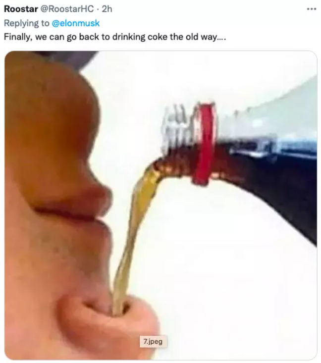 得知马斯克要买可口可乐公司,Twitter的logo也从一只蓝色的小鸟,变成了可口可乐色,成了一只小红鸟。