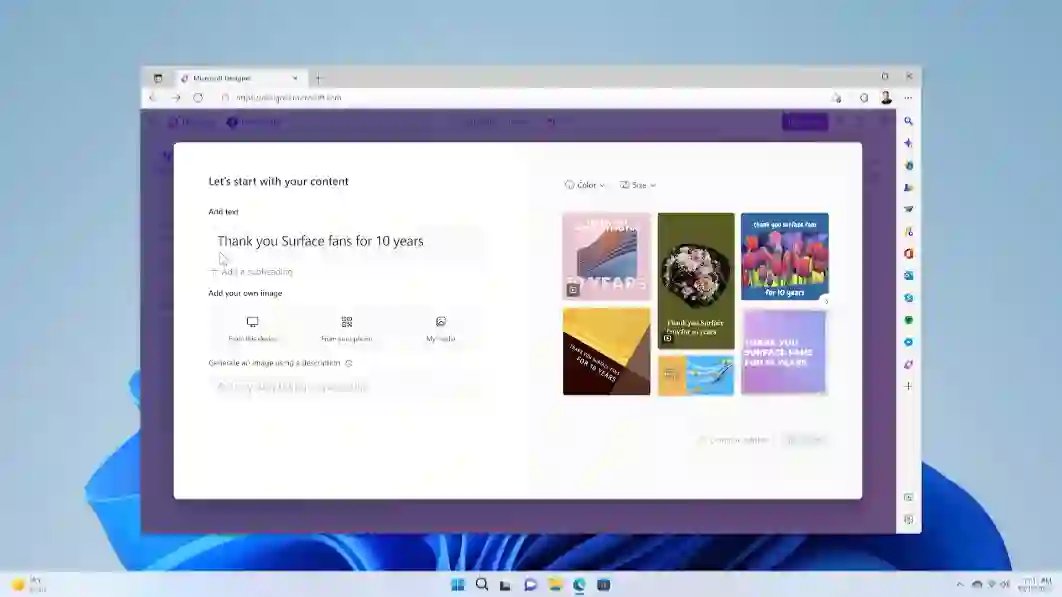 本次发布会的尾声,微软也向我们展示了基于云端 AI 算法、面向 Microsoft 365 用户打造的全新图形设计工具 Microsoft Designer。
