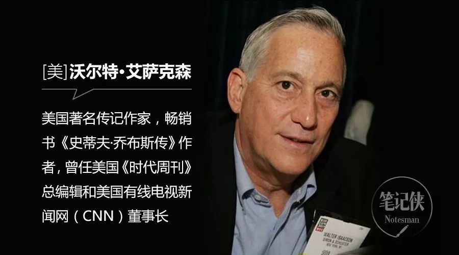 艾萨克森绝对是当下首屈一指的传记作家,他先后就读于哈佛和牛津,得到了英国声誉最高的罗德奖学金,担任过美国著名杂志《时代》周刊总编辑,后来还成为世界传媒巨头 CNN 公司的总裁。