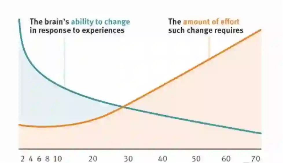 ▲大脑从经验中学习的能力随着年龄的增长而减少