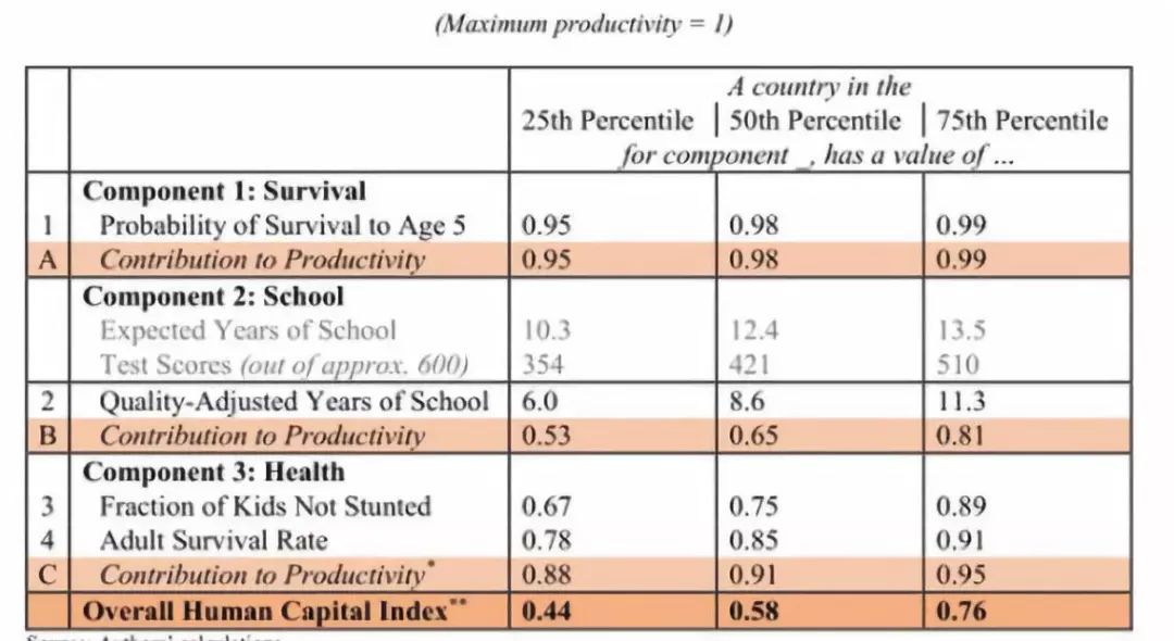 ▲人力资本指数(评估方式:出生/存活率、教育、健康)