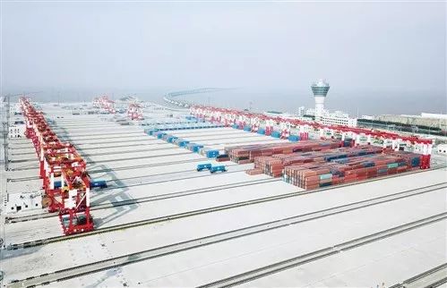 2017年12月10日,上海洋山深水港四期自动化码头33箱区,第121号桥吊轻舒巨臂,稳稳抓起第一个集装箱,标志着全世界规模最大、技术最先进的全自动化码头开港试生产。